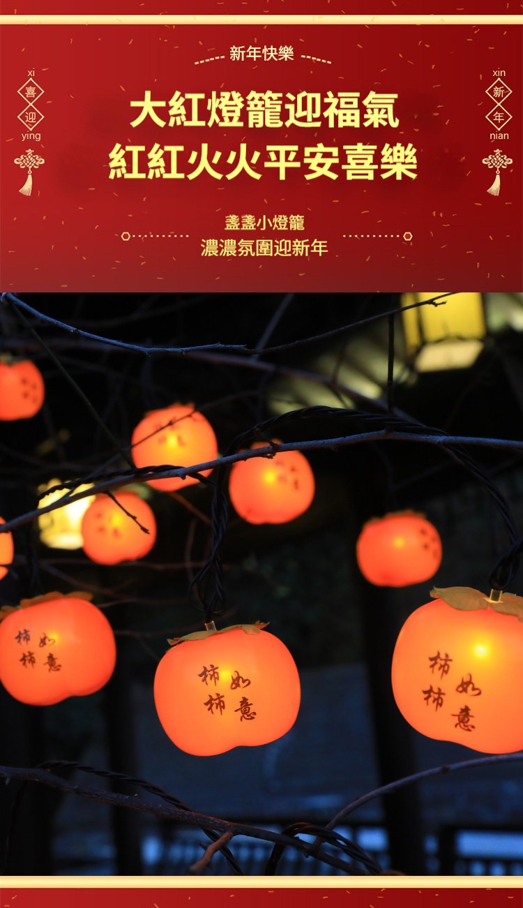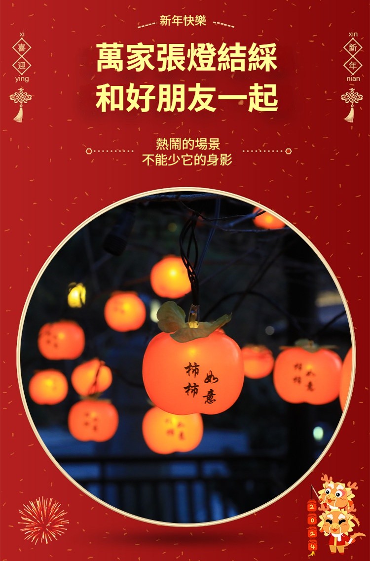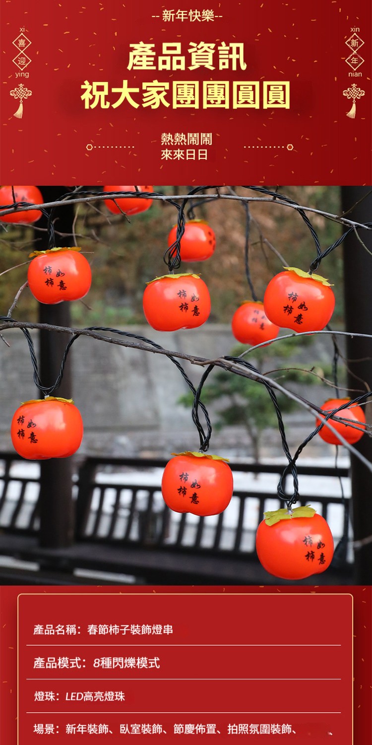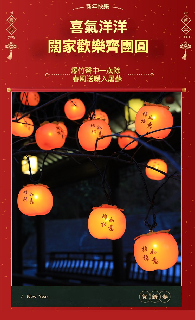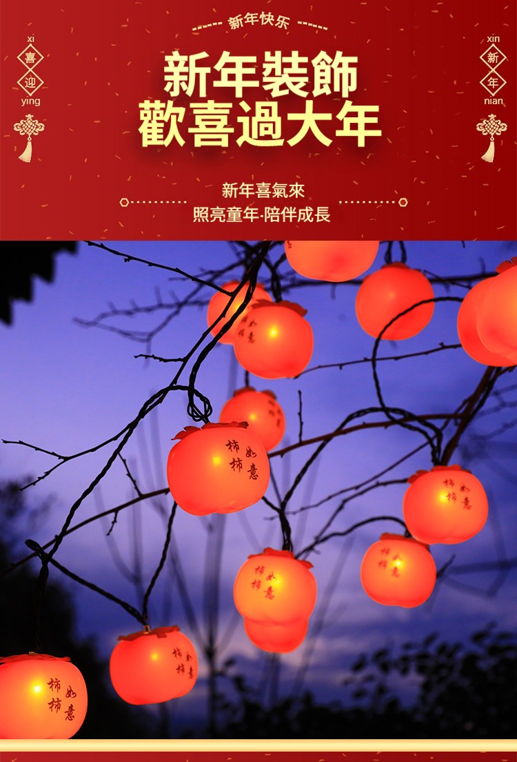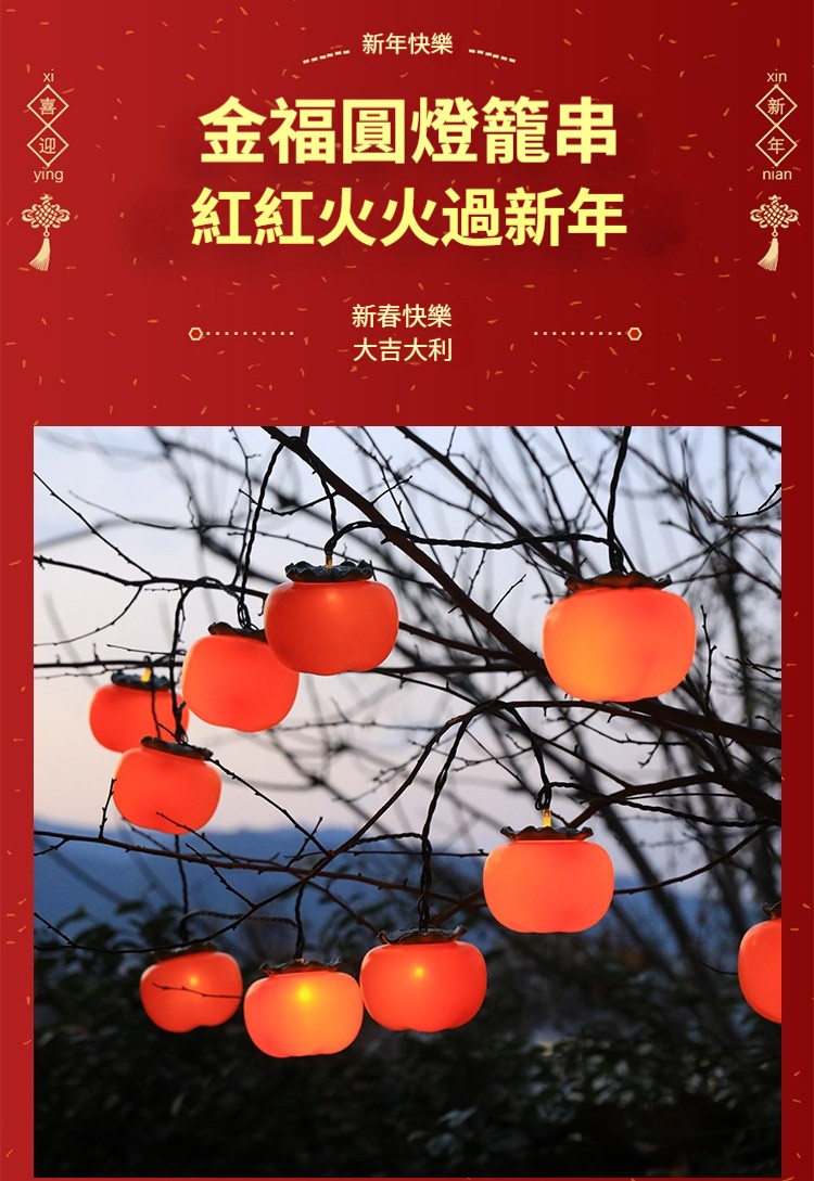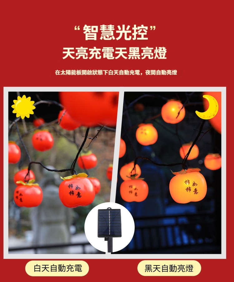 台灣熱銷户外太阳能柿子灯串 ❤️ 庭院装饰必备|过年氛围神器 ✨環保太陽能充電|日間自動蓄電,夜晚浪漫點亮