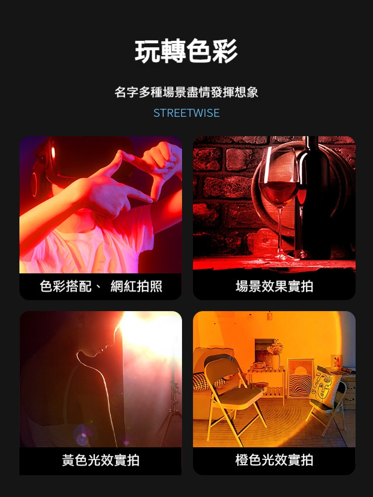 四光源RGB攝影補光手電筒|人像拍攝專用 可變焦暖白光・夕陽氛圍燈✨ → 一支搞定打光需求,輕鬆拍出自然質感人像