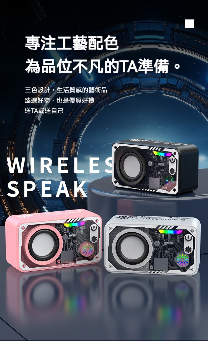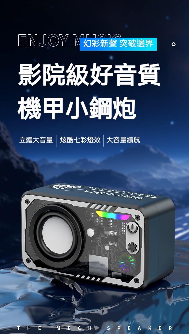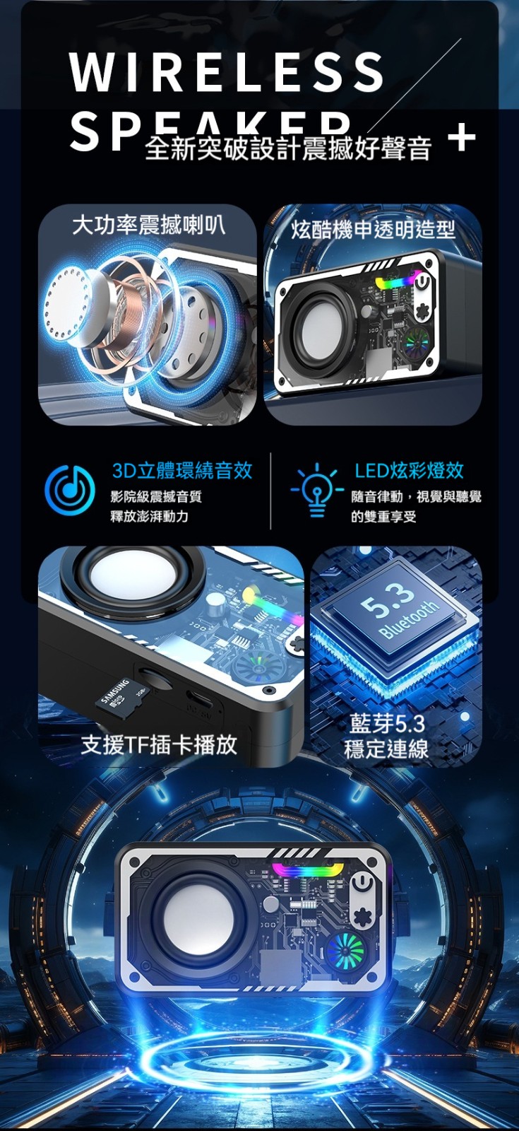 【未來機甲戰艦】透明藍牙小鋼炮音箱✨ RGB炫彩燈光隨音樂律動 重低音砲 便攜無線戶外露營派對神器 送禮首選 台灣快速出貨