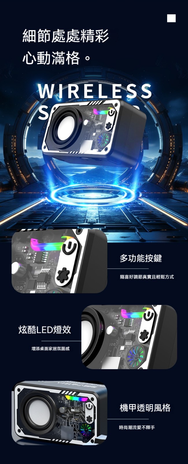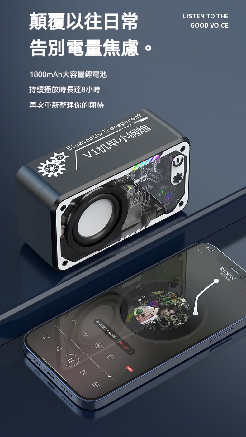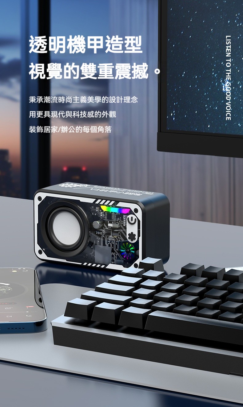 【未來機甲戰艦】透明藍牙小鋼炮音箱✨ RGB炫彩燈光隨音樂律動 重低音砲 便攜無線戶外露營派對神器 送禮首選 台灣快速出貨