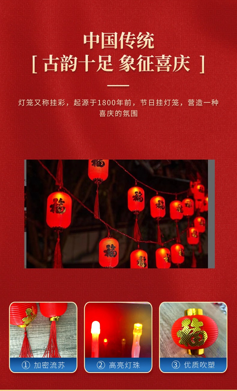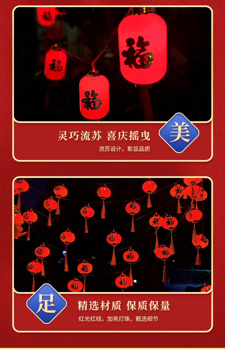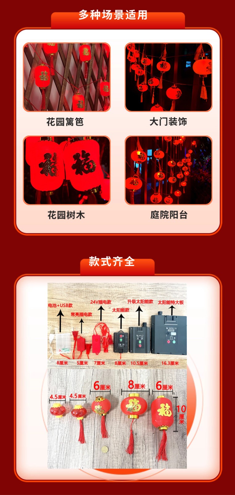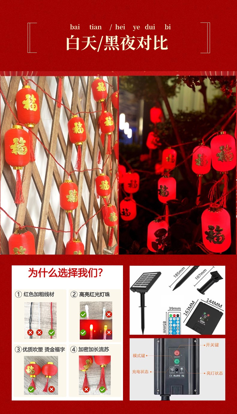 【新年限定專屬✨】免插電太陽能小燈籠串燈 環保節能福字陽台掛飾 春節佈置必備浪漫氛圍燈串❤️台灣現貨快速發貨!