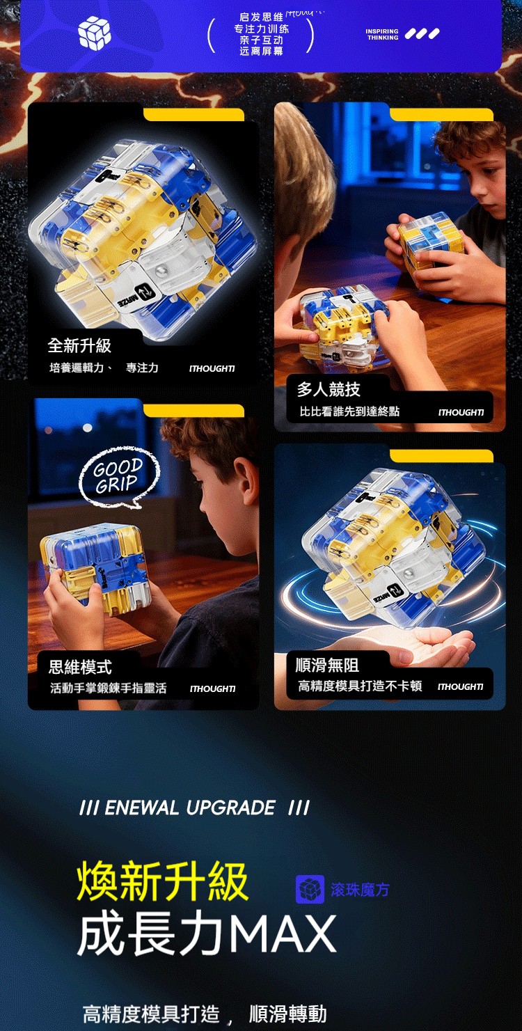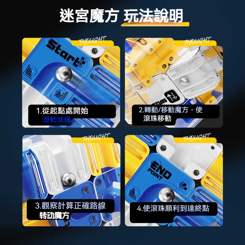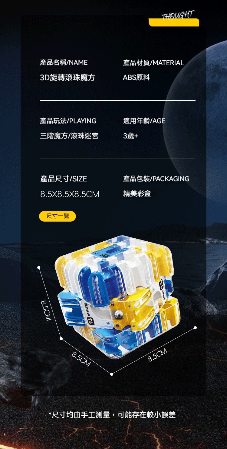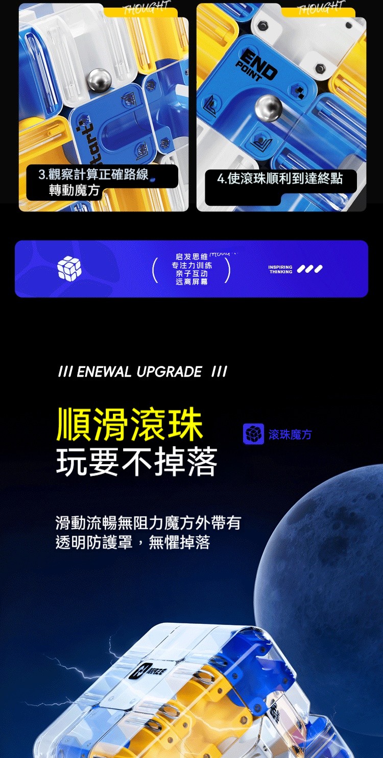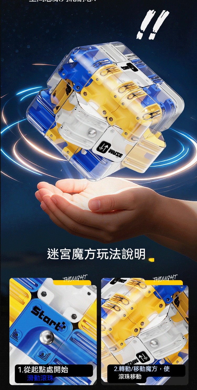 【腦力全開】3D立体滾珠迷宫魔方 三階邏輯思維訓練神器~台灣老師推薦!兒童解壓靜心玩具,鍛鍊空間感&問題解決能力,耐玩ABS材質!