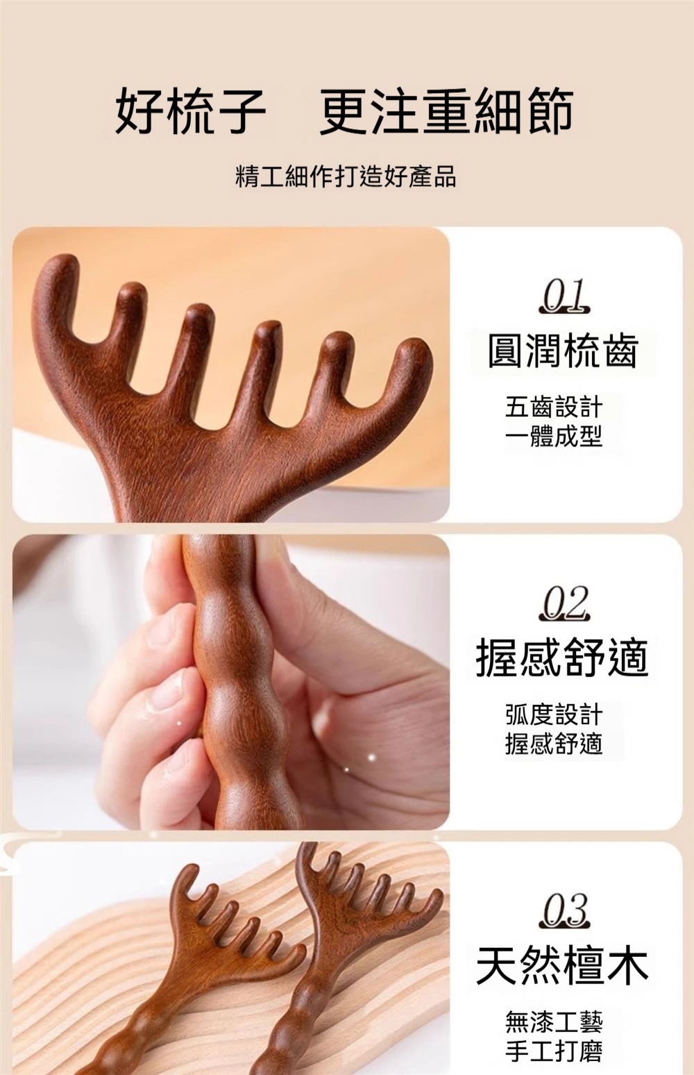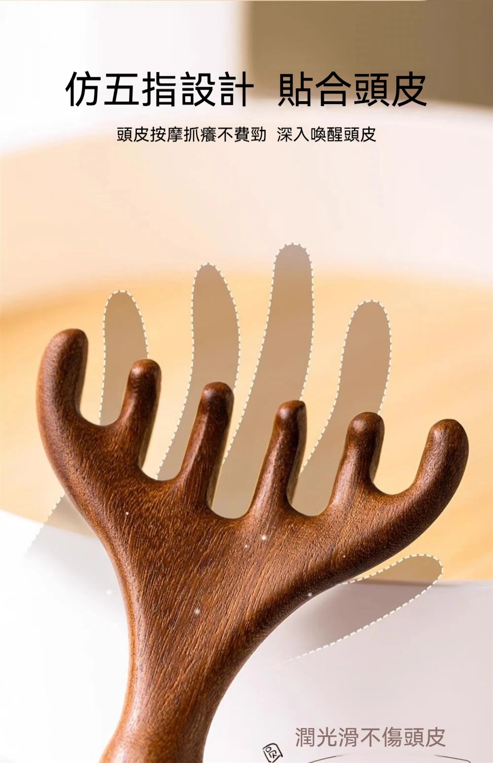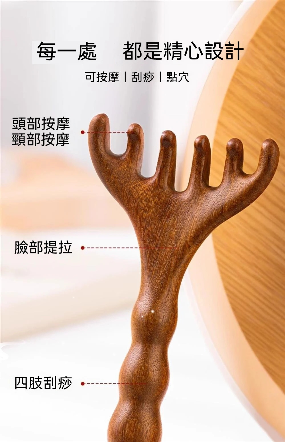 天然檀木【鹿角按摩梳】頭皮按摩_頸部推拿_眼部按摩_刮痧經絡刷_✅頭臉按摩,疏通經絡,刮痧排毒_隨時能享受按摩又放鬆的感覺 臉部眼部頸部皆可用 在家自己輕鬆做按摩