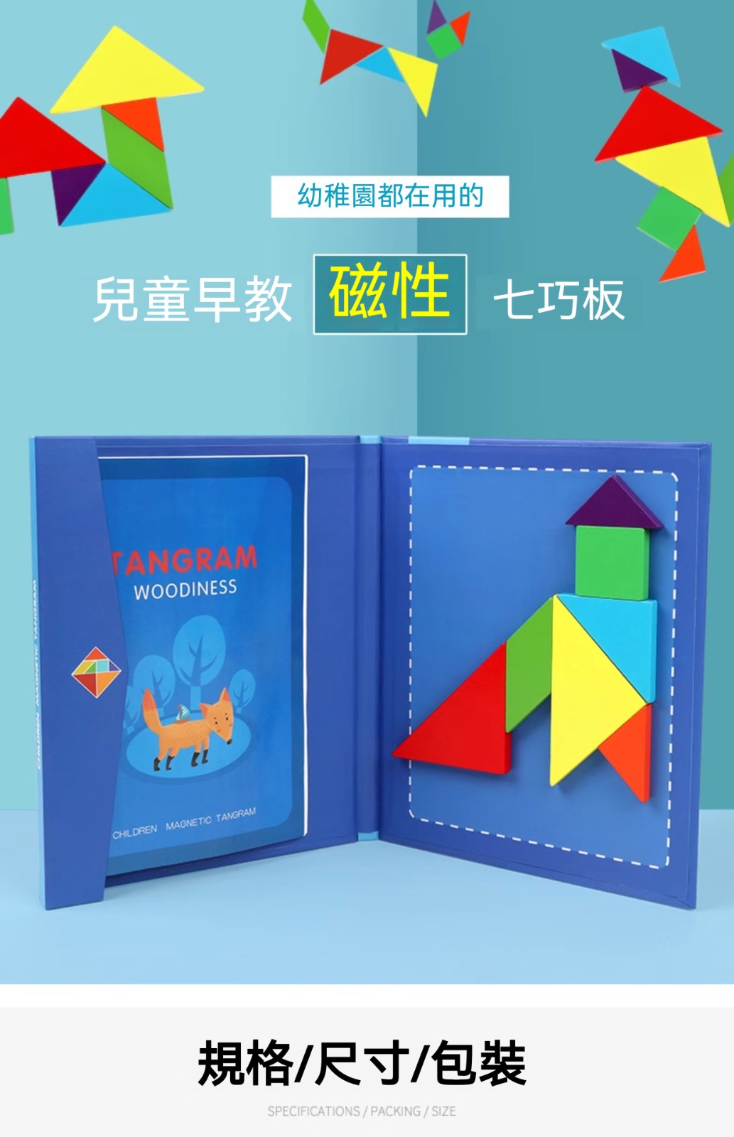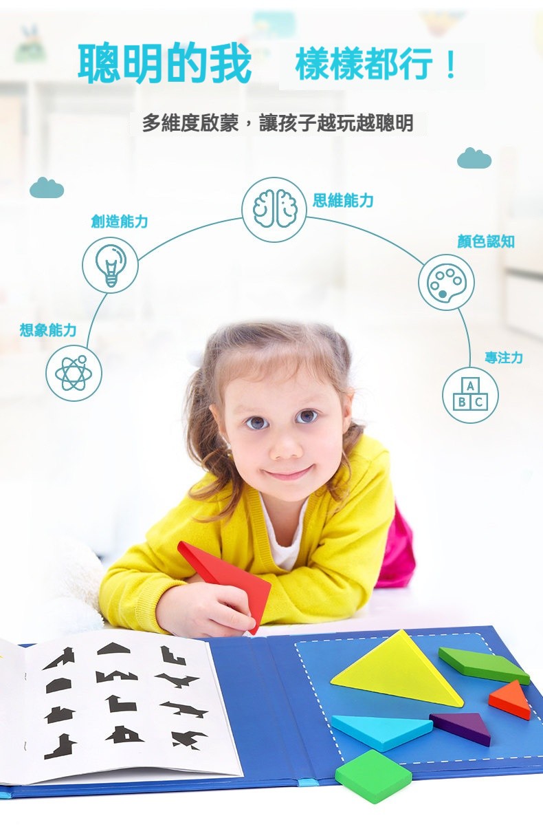 【磁性吸附 防丟設計】兒童磁性七巧板進階款|一年級小學生必備數學教具 幼兒園專用益智拼圖玩具 邊玩邊學形狀組合 開發大腦潛能